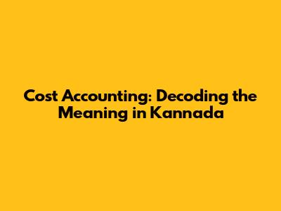 Cost Accounting: Meaning & Importance In Kannada