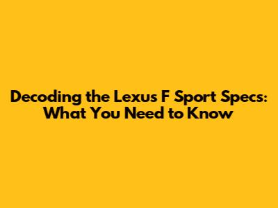 Decoding The Lexus F Sport Specs: What You Need To Know