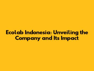 Hey guys! Ever heard of Ecolab Indonesia? If you're scratching your head, no worries – we're diving deep to give you the lowdown on this fascinating company. Ecolab is a global juggernaut, but what's their deal in Indonesia? Let's unpack everything, from what they actually do to their impact on the local scene. Get ready for a deep dive that'll leave you in the know!
