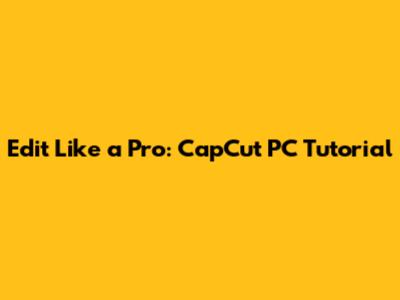 Edit Like A Pro: CapCut PC Tutorial