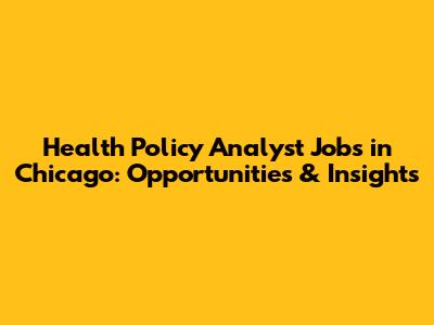 Health Policy Analyst Jobs In Chicago: Opportunities & Insights