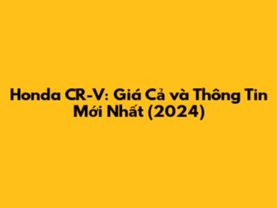 Honda CR-V: Giá Cả Và Thông Tin Mới Nhất (2024)