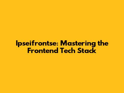 Ipseifrontse: Mastering The Frontend Tech Stack