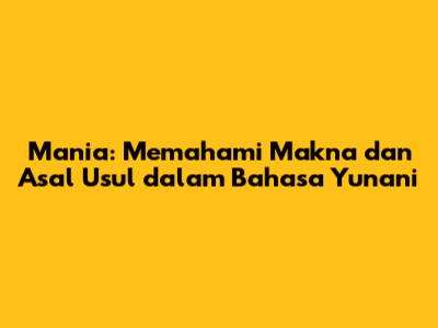 Mania: Memahami Makna Dan Asal Usul Dalam Bahasa Yunani