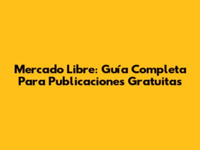 Mercado Libre: Guía Completa Para Publicaciones Gratuitas