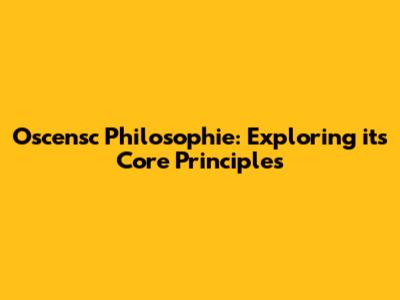 Oscensc Philosophie: Exploring Its Core Principles