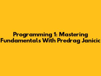Programming 1: Mastering Fundamentals With Predrag Janicic