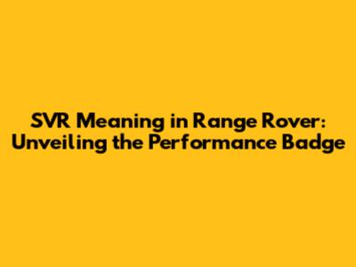 SVR Meaning In Range Rover: Unveiling The Performance Badge