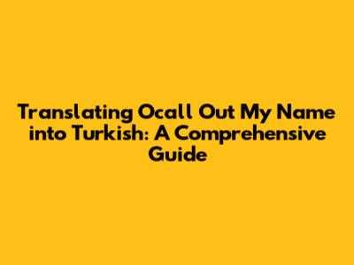 Hey guys! Ever wondered how to translate a phrase like "Ocall Out My Name" into Turkish? Well, you've come to the right place! Translation isn't just about swapping words; it's about capturing the essence, context, and emotion behind them. Let's dive deep into the nuances of translating this phrase, exploring various options and their implications. Whether you're a language enthusiast, a student, or just curious, this guide will break down everything you need to know.