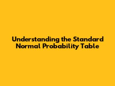 Understanding The Standard Normal Probability Table