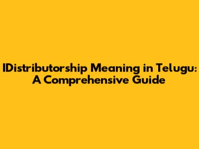 What Is IDistributorship? Telugu Meaning Explained