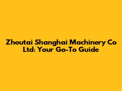 Zhoutai Shanghai Machinery: Your Guide